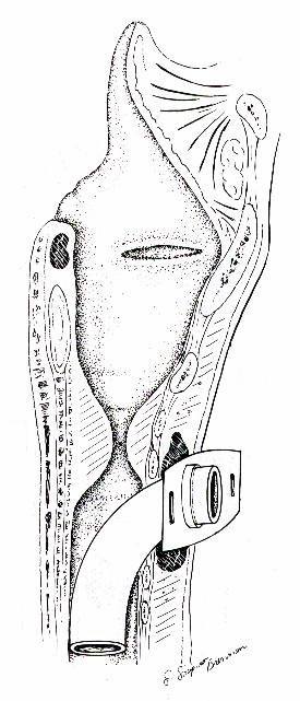 above the cuff. An outside air source is used to force air through the vocal cords.