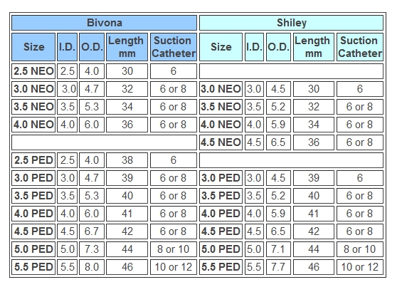 Sizing Comparison Chart Neonatal and Pediatric Tracheostomy Tubes